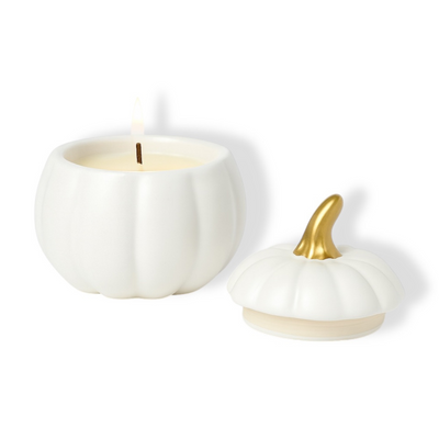 WHITE PUMPKIN CERAMIC CANDLE - LIMITED QUANTITY
