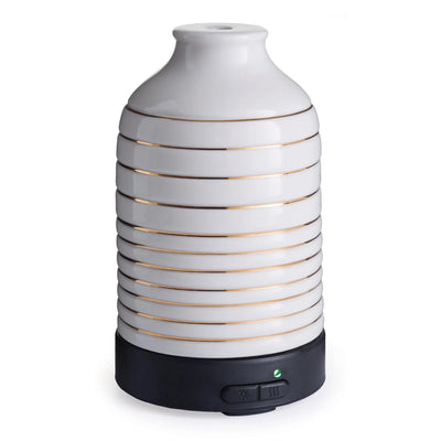 The Airome 100 mL Medium Ultrasonic Oil Diffuser works by using slight vibrations to emit a fine mist of cool water carrying your favorite scent. The medium 100 mL diffuser allows you to enjoy a mist of essential oils for up to 8 hours. Your choice of two settings of intermittent, which will run for 8 hours, or continuous, which runs for 4 hours. Diffuser automatically shuts off when water runs out.