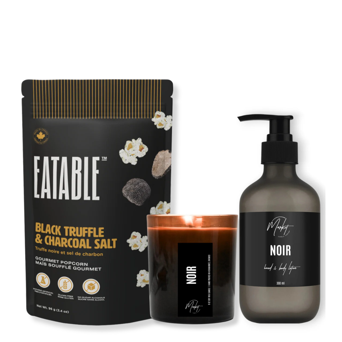 Deep, moody, and effortlessly elevated. The Noir candle brings rich, warm notes, paired with a luxury and truffle-infused gourmet popcorn for a bold, indulgent experience.